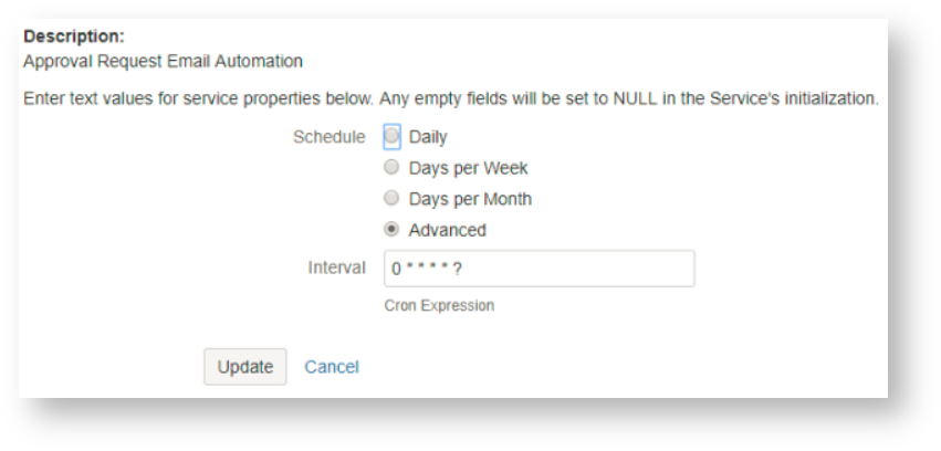 The periodical evaluation of the email automation depends by the Approval Service's Schedule.
