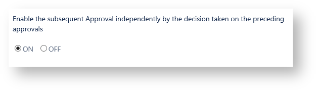 You can choose to submit for approval the subsequent approval independently by the response gets on the preceding approval or only case of it gets an approbation (Default).