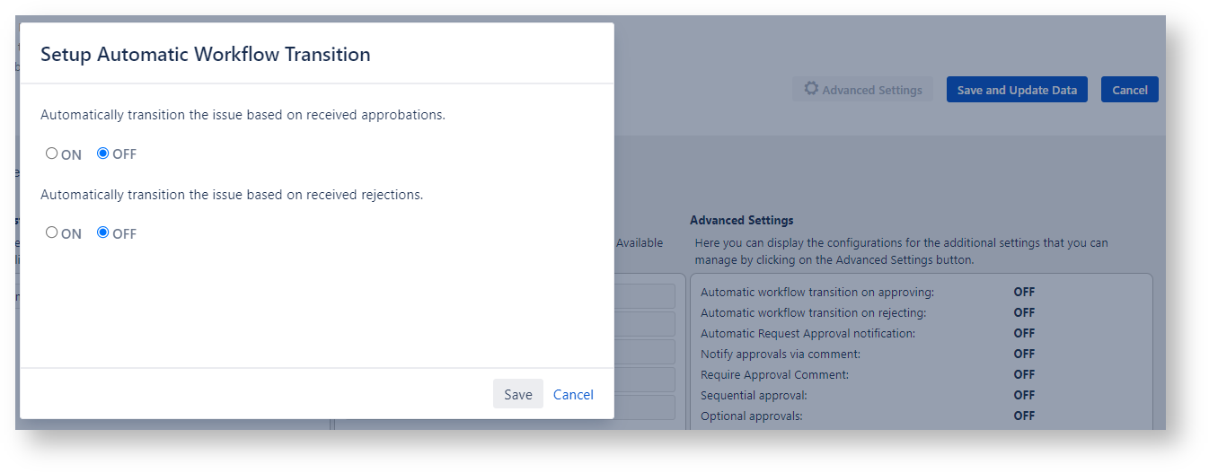 - the Automatic transitioning of the issue based on received approbations (by default All approbations)