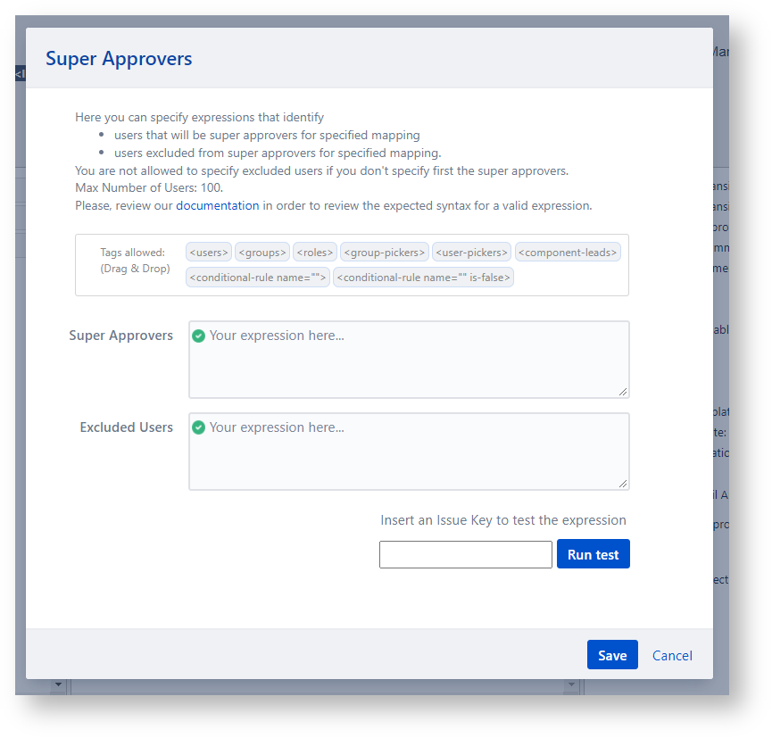 Select Super Approvers in order to Setup expressions identifying the Super Approvers.