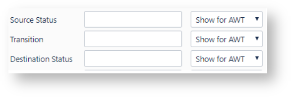Furthermore, case of the Source Status, Transition and Destination Status you are able to show such fields only when the related event is the Automatic Workflow Transition by selecting the option to Show for Awt.