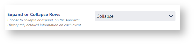 The Expand or Collapse Rows option allows you to choose if the data displayed on the Approval History tab show expanded or collapsed.