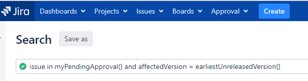 Navigate the Jira's built-in search navigator and type issue in myPendingApproval()