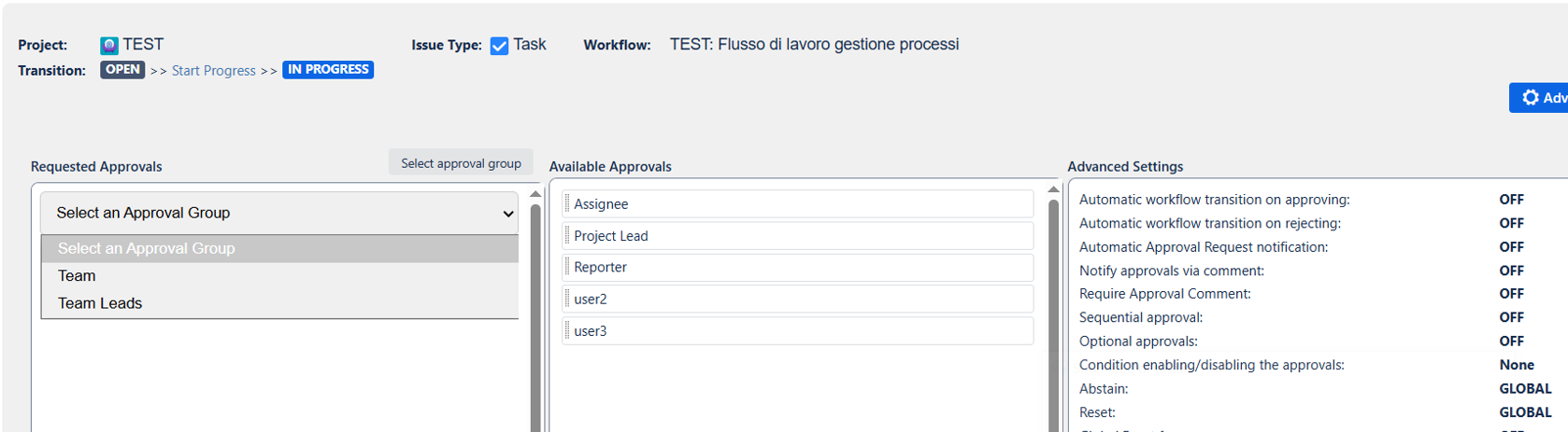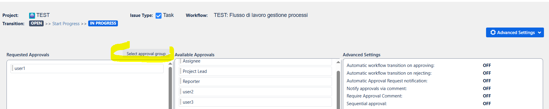 The operational steps for inserting the Approvals of a Group in the "Requested Approvals" column are similar to those described in the paragraph   Add Mapping by Approval Group