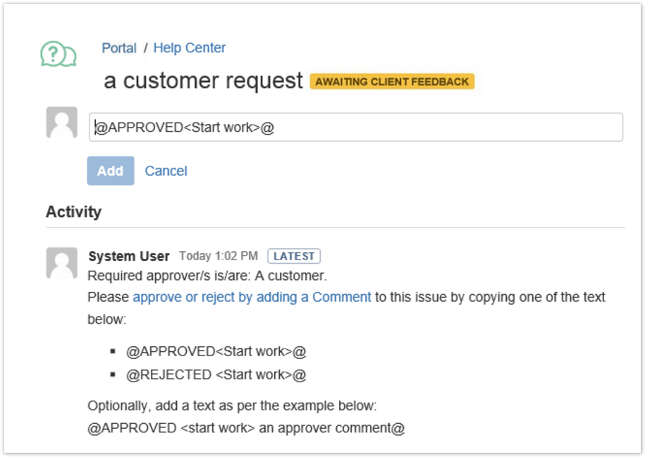 As an approver you will display an approval request in the Activity log on Jira Service Desk Customer Portal.