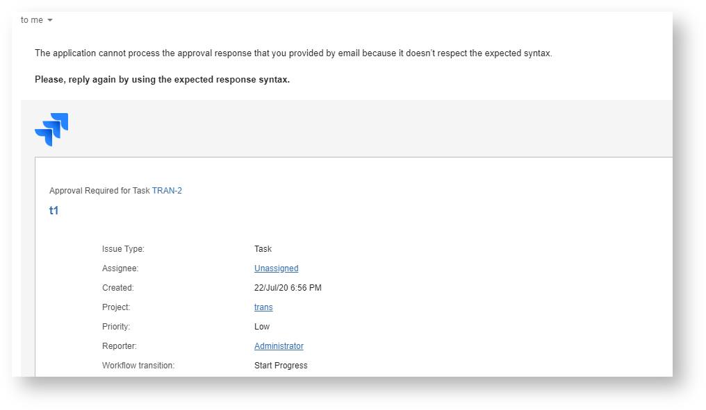 If the approver reply to the email by using an invalid syntax, a new email message advises so that it will be possible to reply again to the original message or the received one.