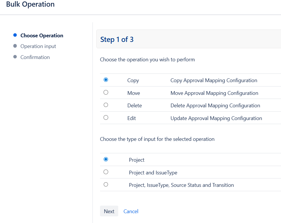 The following API performs bulk operations such as delete, copy, move, and edit on the Approval mapping configuration.