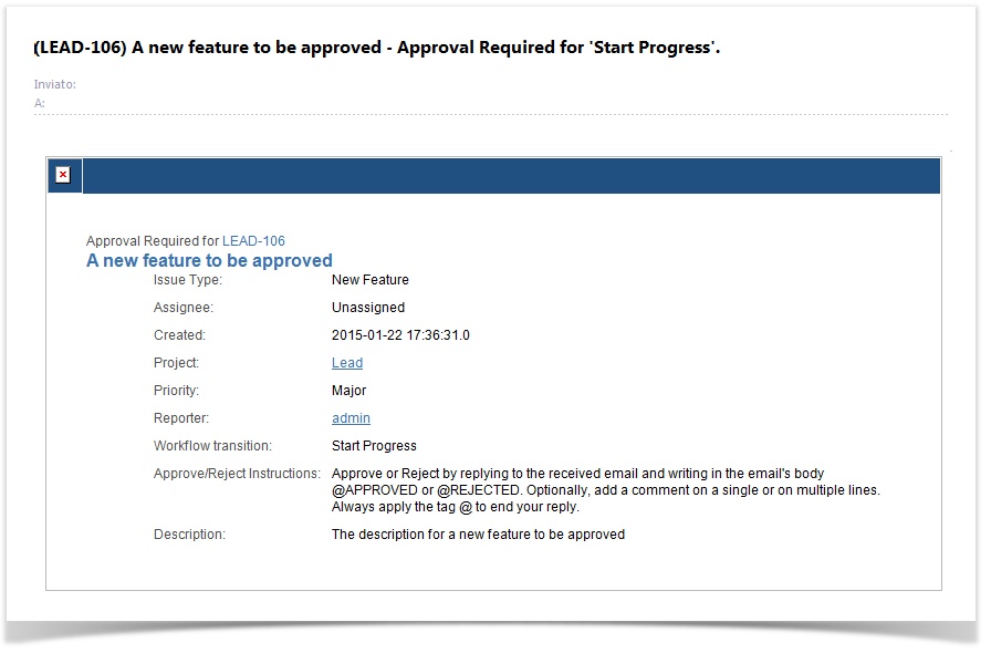 The add-on allows to configure a customized  e-mail template by project so that additional information can be added to the  'Approval Required' e-mail. If no customized  e-mail template is associated to a given project, the' Approval Required' e-mail notification will be managed via the default template.