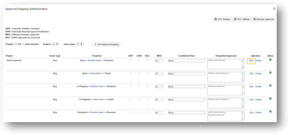1 | Navigate to the Approval Mapping Administration screen and click Edit to display the Edit Approval Mapping screen allowing to update an existing Approval Mapping.