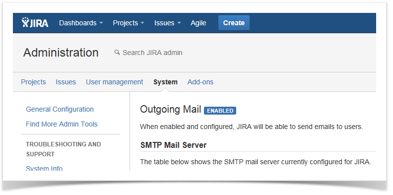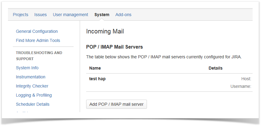 JIRA Administration -> System -> Mail -> Incoming Mail