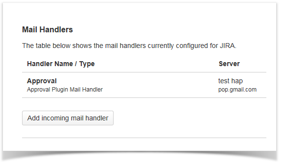 Incoming Mail Handler configuration screen
