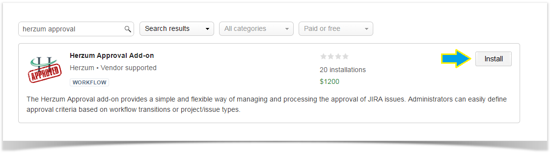3 | Click the Install button for the Herzum Approval add-on. | Button to install the Herzum Approval add-on |