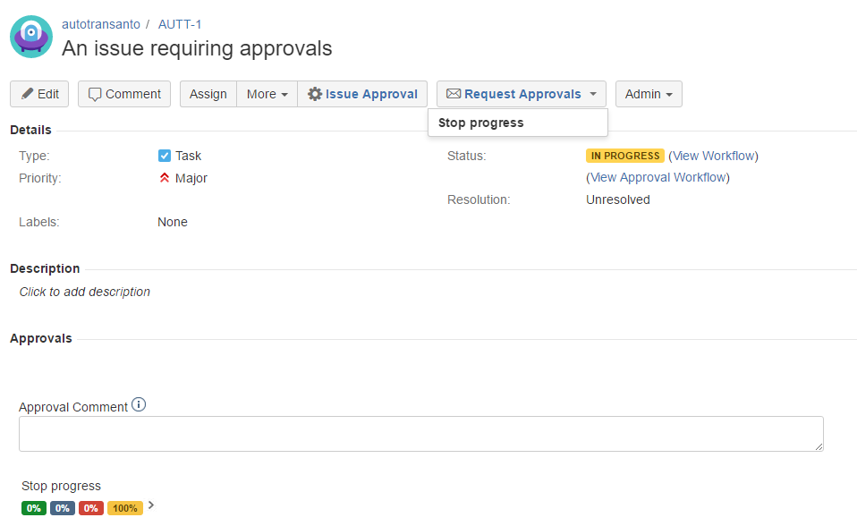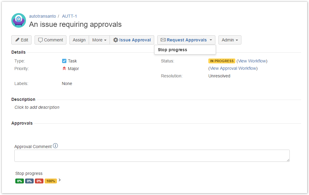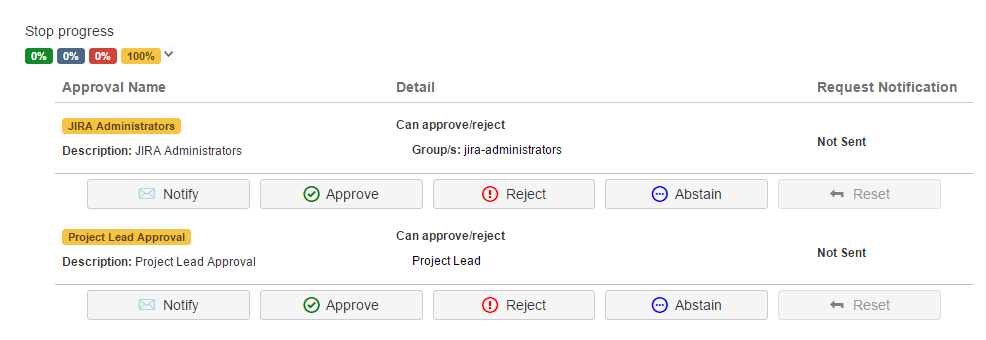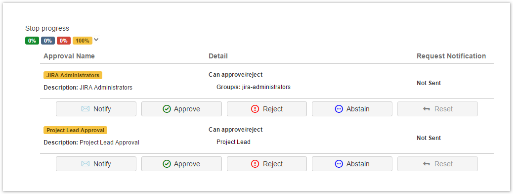 - all approvers requested on a workflow transition, by selecting the Apploval Transition via the Request Approval button