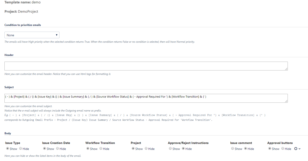 Assuming to have configured the following basic template where we have enabled the Approval buttons