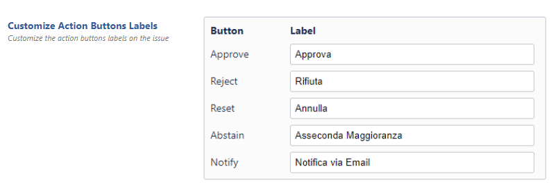 Is it possible to change the Action Buttons labels (approve, reject, abstain, reset, notify)?