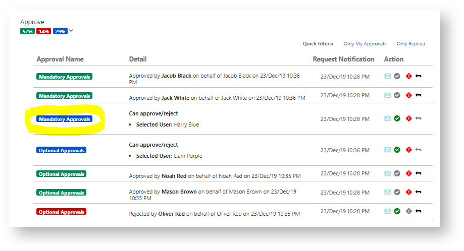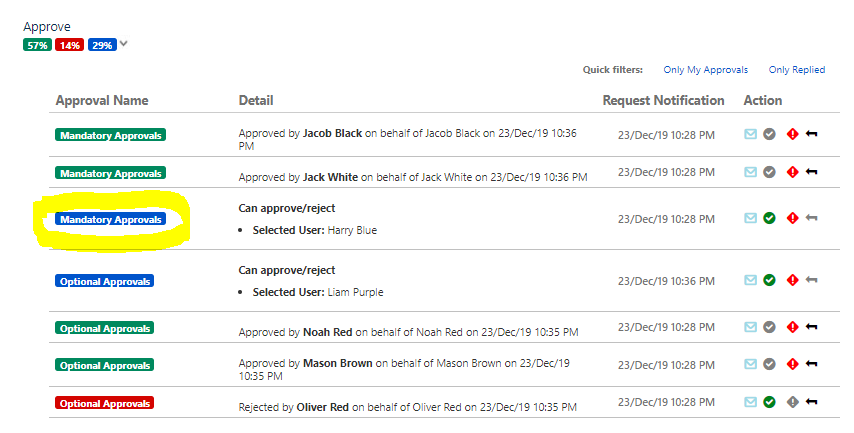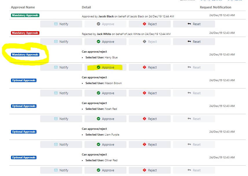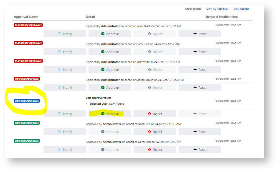 Intention is, that if a optional approver rejects this rejections counts, only a approval is a notice only decision.