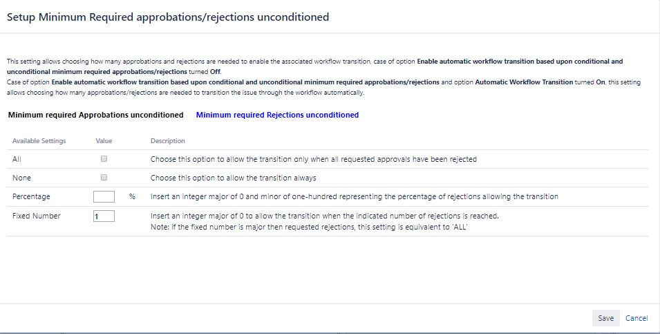 Setup Minimum Required approbations/rejections unconditioned Advanced Settings