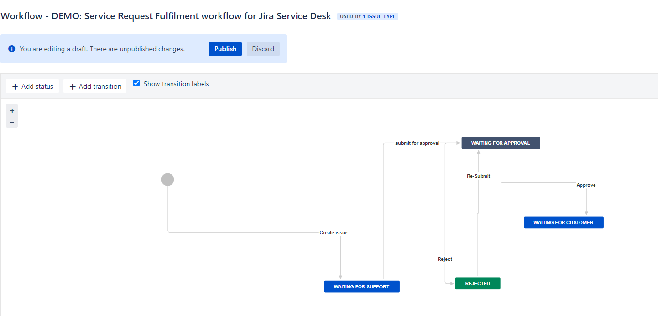 The approval should come from i to iv and finally trigger status from waiting for approval to "waiting for customer"