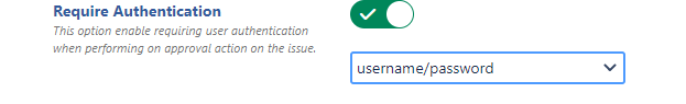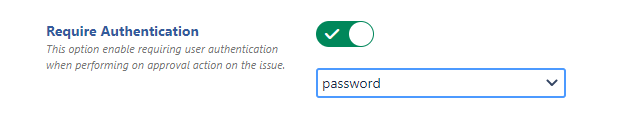 This settings allows to require authentication when an user performs on approval action on the issue.