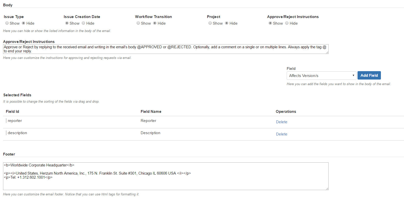 Customization of the Approval Request Email Template