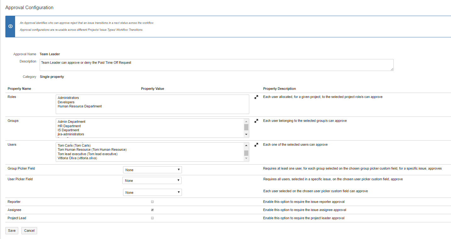 This page provide an example of Paid Time Off Approval Process automation in Jira via the Herzum Approval app.
