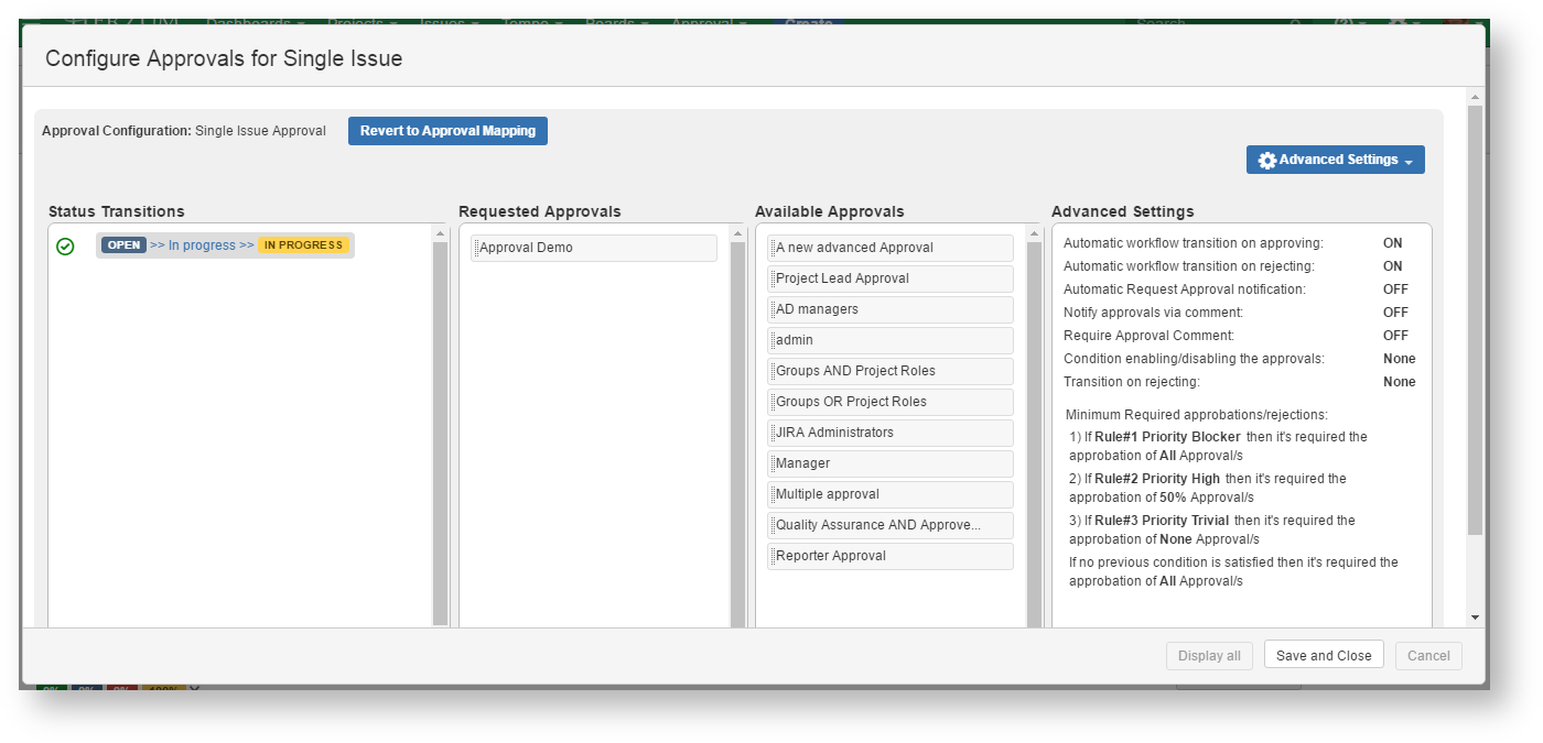 It's also possible to honor the customer requirement configuring the Approval for Single Issue.