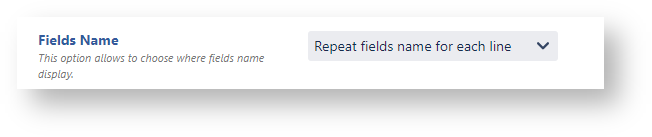 The Fields Name option allows you to choose if the fields name display on each line (default) or only once at the top of the Approval history tab.