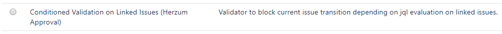 Follow the steps below in order to setup the Conditioned Validation on Linked Issues validator on a workflow transition: