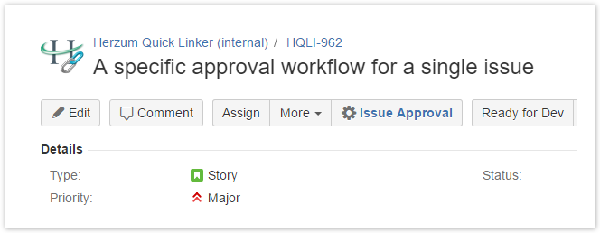 Notice that Project leads, Jira System administrators and users in project role Administrators can setup a specific approval workflow for a single issue by default.
