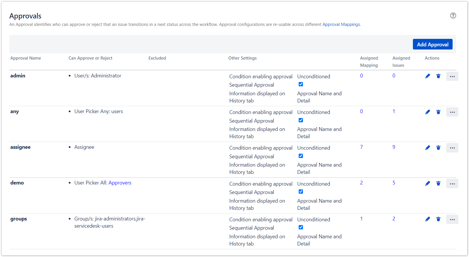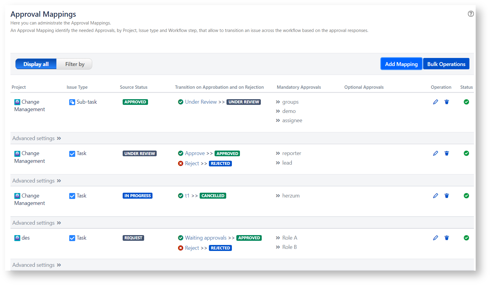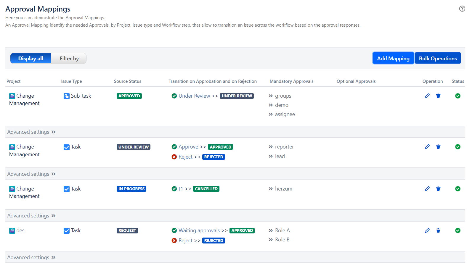The Approval Mapping screen allows you to setup your Approval Flows by Project and Issue Type..