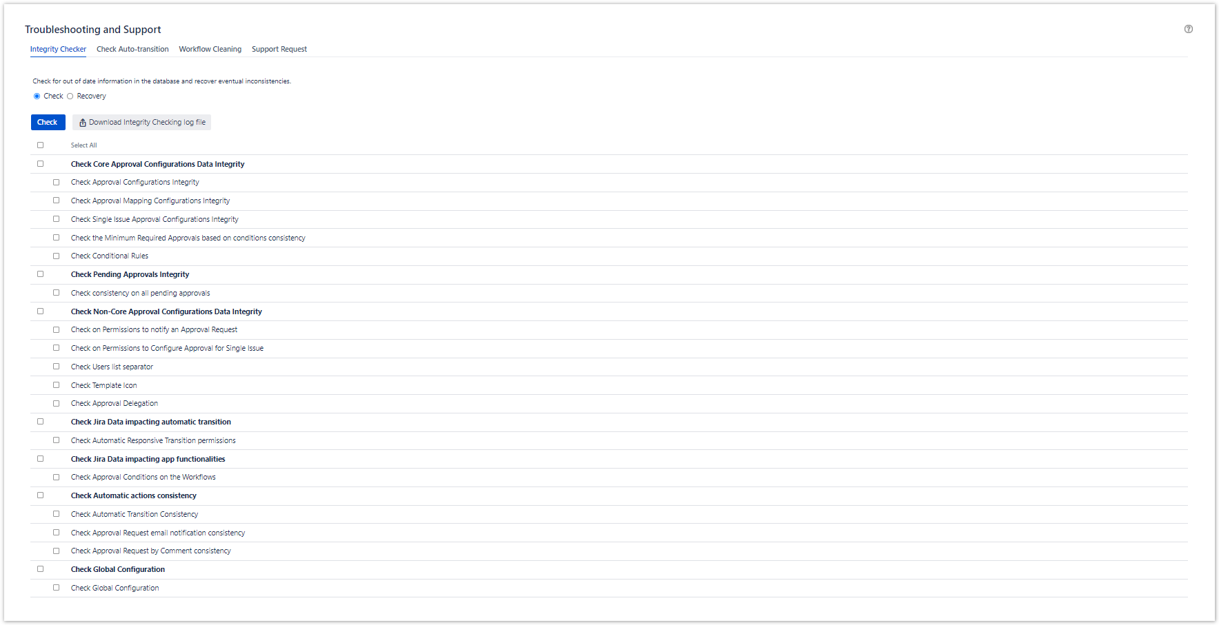 - the Recovery of inconsistencies relating missing referenced data in Jira and in case of some unexpected errors (e.g. missing automatic notification)