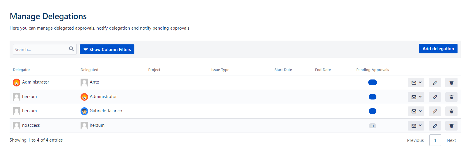 - Approval Delegation → enable/disable the Approval delegation functionalities (Disabled by default).