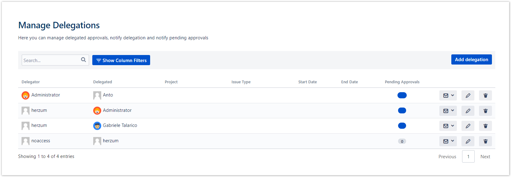 As a Jira administrator, you are able to delegate the approval authority of any user to another one.