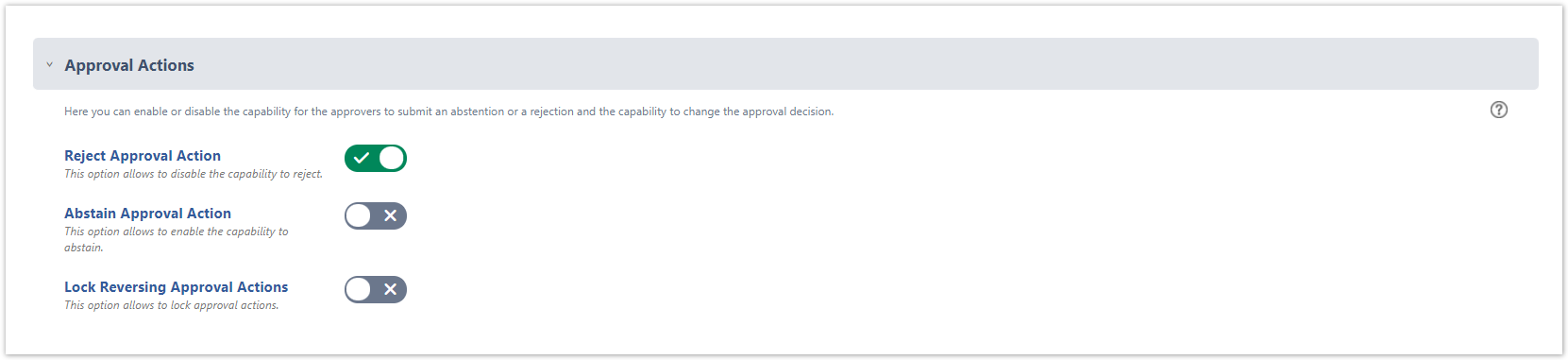 Abstain Approval Action → This option allows to enable the capability to abstain (Disabled by default).