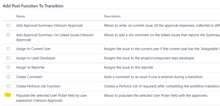 • Check the option Populate the selected User Picker field by Expression (Herzum Approval)
