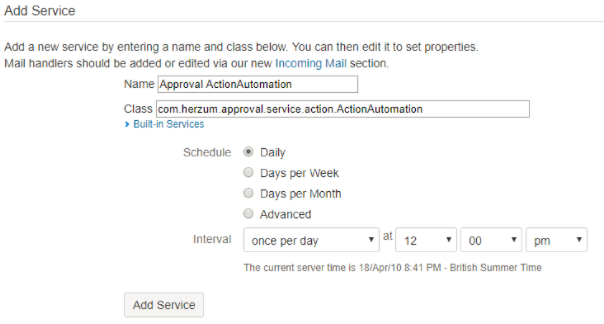 Follow the steps below in order to register the Automatic Change Approval Status service: