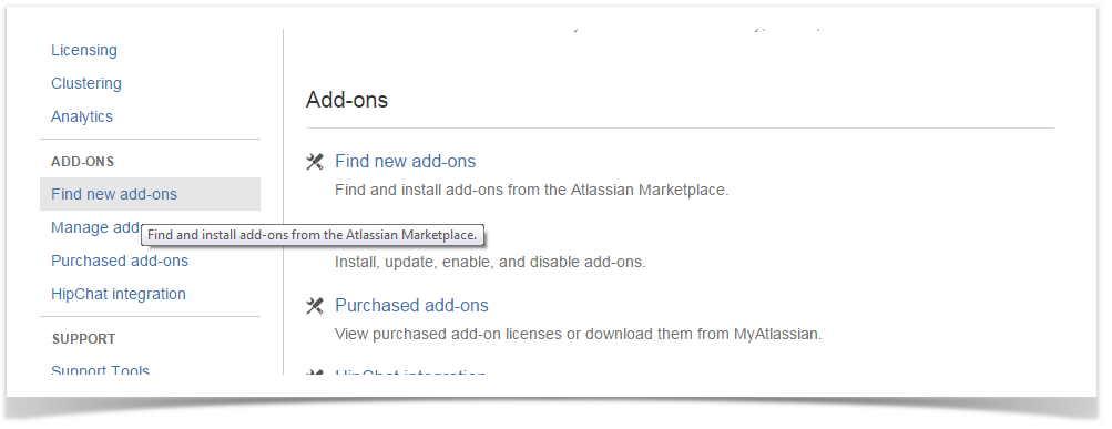 Navigate to the Add-ons panel in your Bitbucket instance.