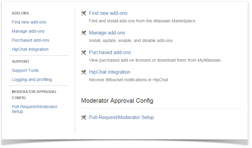 Navigate to the Add-Ons Panel within your Bitbucket installation.