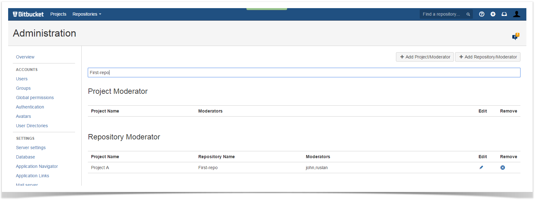 2Search a Project/Repository rule just typing Project or Repository Name and click enter