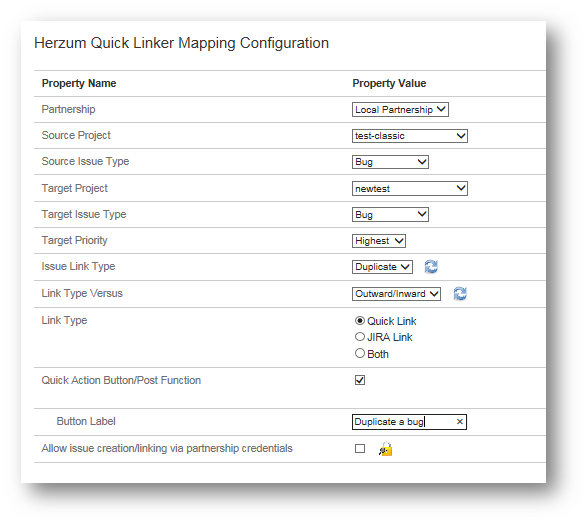 Notice that a mapping enables issue creation and link via the quick action button only if the Quick Action Button box is checked.