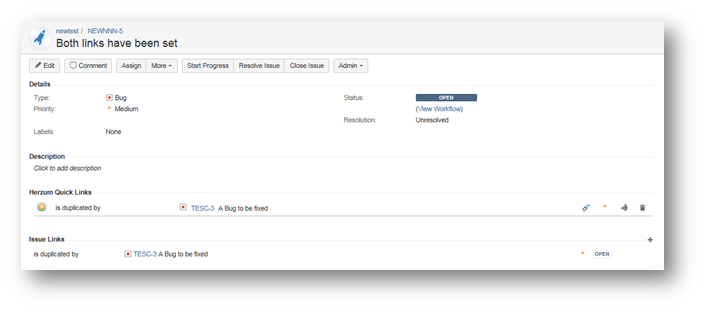 Due to this setting, either Jira Links and Quick Links are created and displayed on the issue view screen.