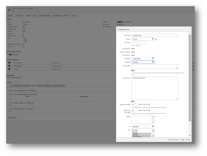 Following, it's going to be illustrated the Issue Creation and linking functionality based on the setting illustrated above.