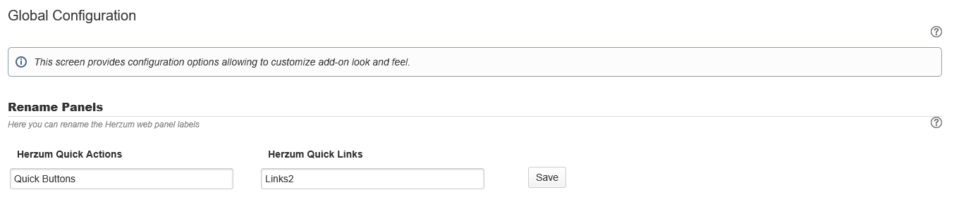 | 1 | Navigate to the Add-Ons Panel within your Jira installation and Click on Global Configuration. Administration → Add-Ons → Herzum Quick Linker → Global Configuration | Herzum Quick Linker administration panel |