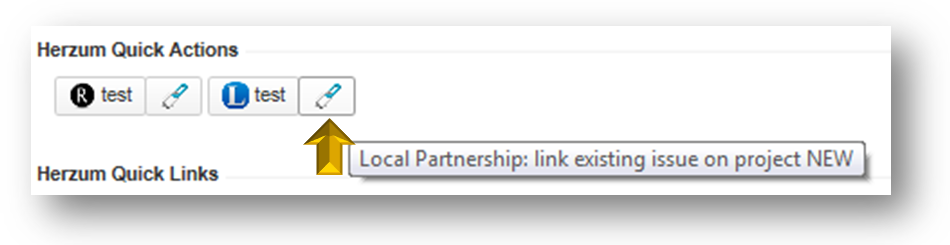 2 | The Herzum Quick actions panel shows the button, associated to the configured mapping, allowing to link an existing issue. | Herzum Quick actions panel |
