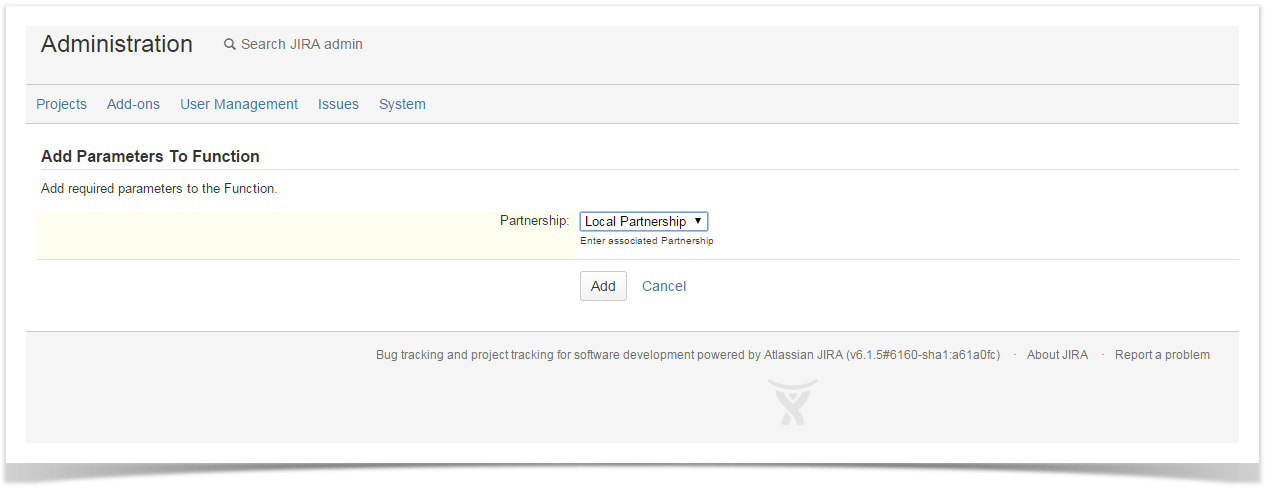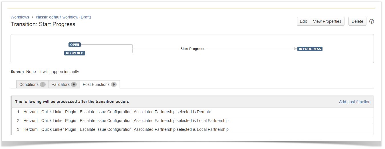 On selecting the Escalate Issue post function it is required to select a Partnership by a select list showing all Partnerships having the current JIRA instance as Source URL.