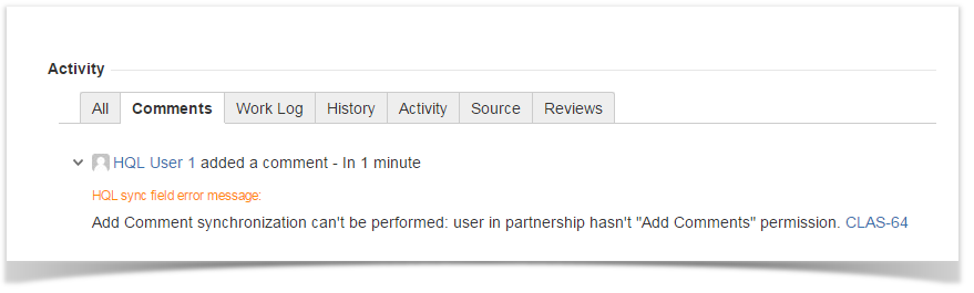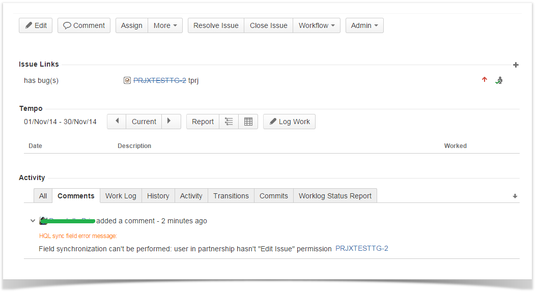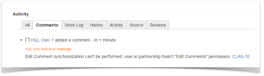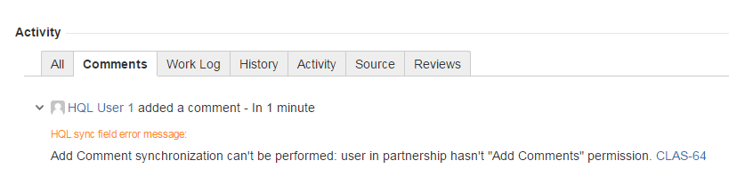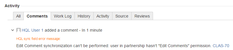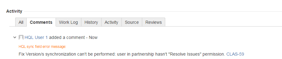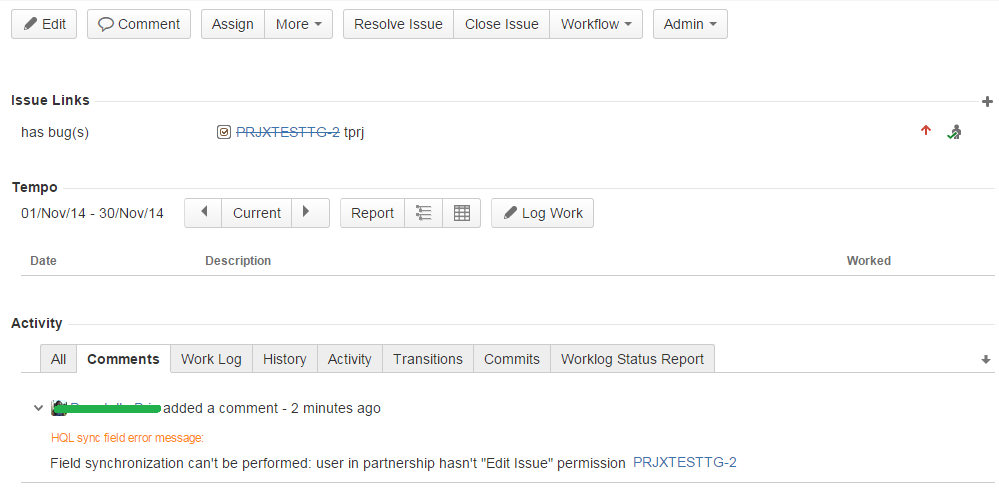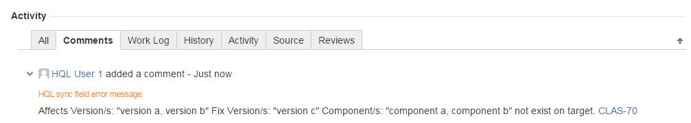 When editing the issue a new Comment is added on the Source and on the Target Issue as reported bellow: