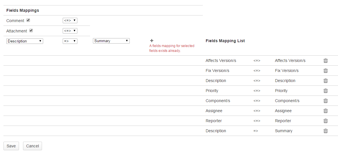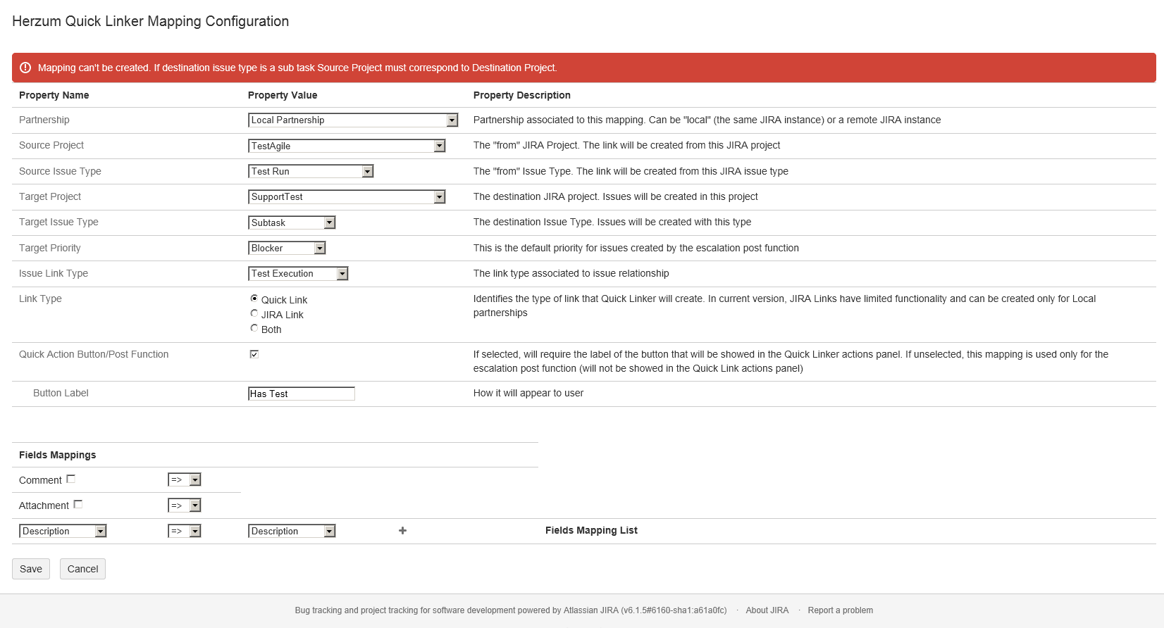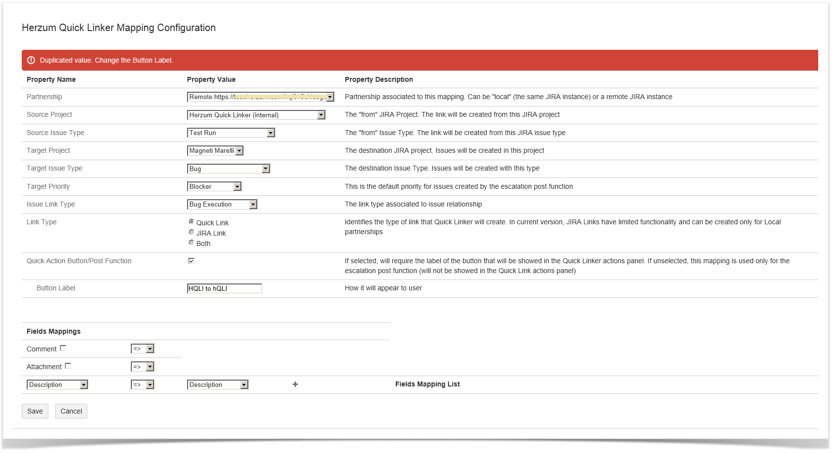 a mapping has been already configured having same partnership, source project, source issue type and button label.