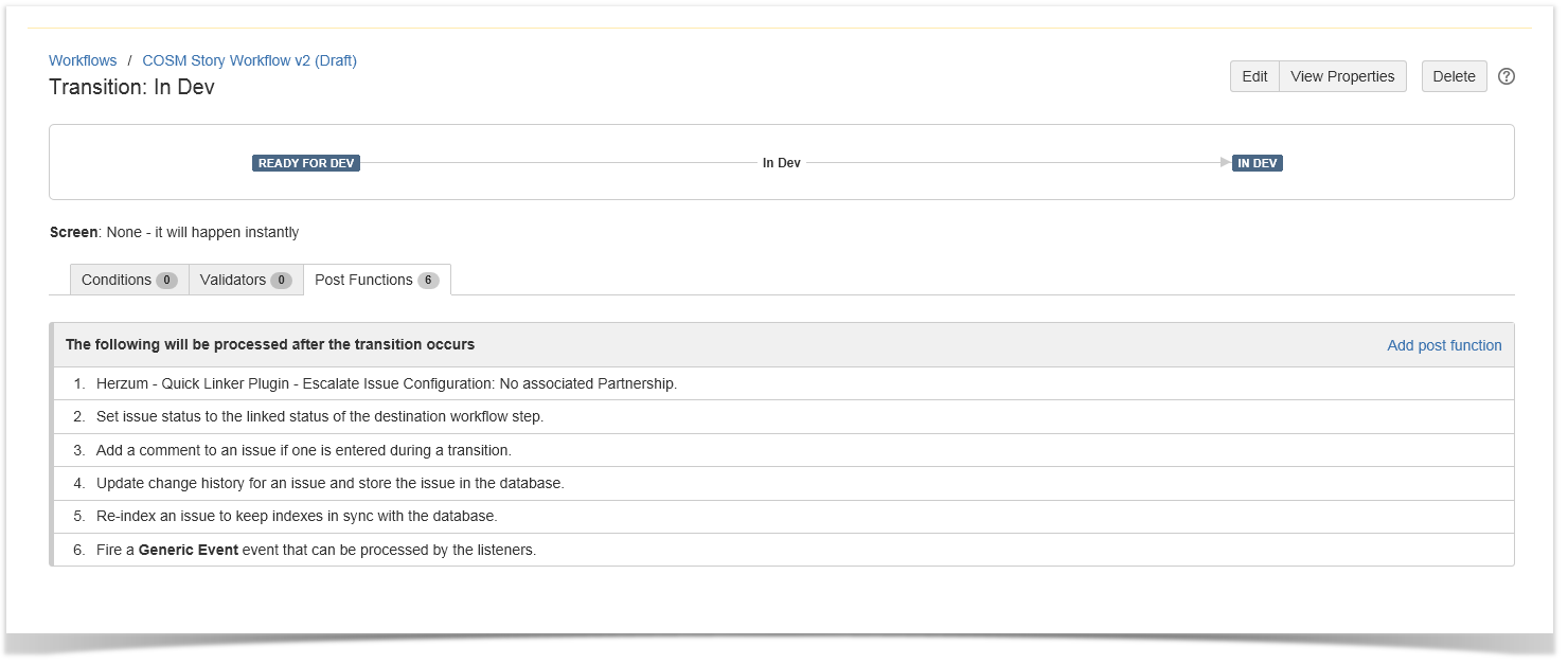 When displaying the post functions configured for a workflow transition, you get the Message: