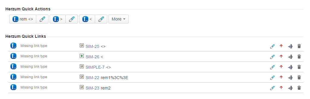 When displaying the Quick Links on the Herzum Quick Links panel you get the Message: Issue Link not available.