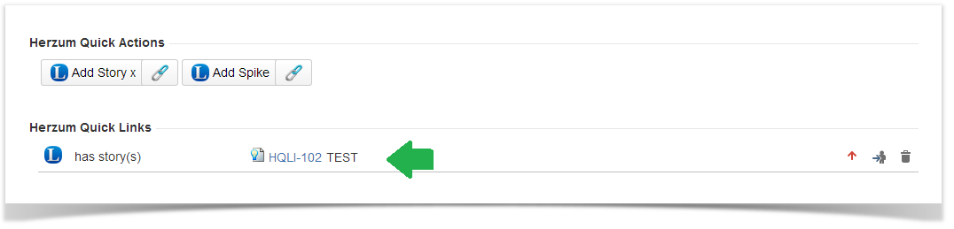 When the configured Mapping has its Link Type set to Quick Link, the linked issue will be displayed only on the Herzum Quick Links panel.
